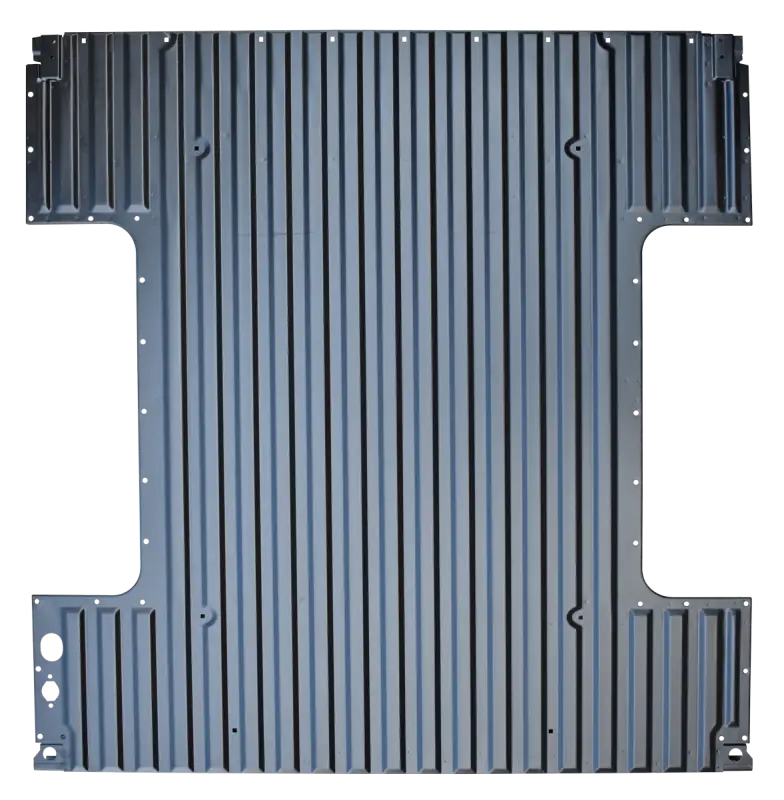 Full Bed Floor Panel w/Bracing w/o Rear Seat & Spare Tire Provisions, 69-72 Blazer. Reproduction full bed floor panel for 1969-72 Blazer and Jimmy models. Manufactured to factory specifications featuring pre-punched mounting holes and EDP coated for rust prevention.